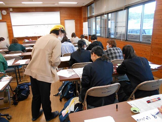 11月7日(木)に家庭教育学級「簡単!楽しい!筆文字講座」を実施しました。昨年に引き続き高原町在住のN様を講師に招いて、感謝の想いや普段伝えられない気持ちを筆で表現する時間になりました。N様の温かい言葉かけで参加した保護者や生徒もすばらしい作品を作りあげていました。12月5日には、「クリスマスリース教室」を予定いています。クリスマスの時期に玄関などに飾るクリスマスリースを作ってみませんか。
