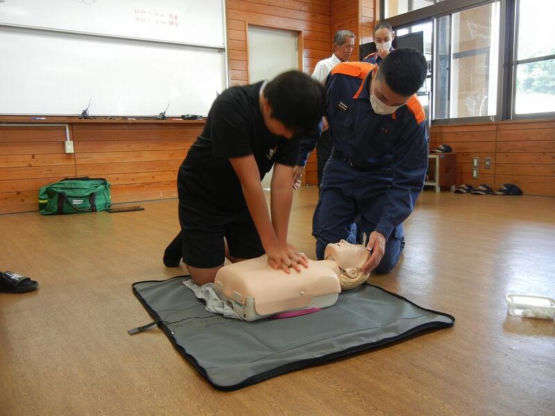 7月26日に西諸広域行政事務組合の高原分遣所の皆様にきていただき、救急法講習会を実施しました。今回は職員と部活動の代表が参加して行いました。講習会を通して、救急法についての正しい知識と技術を再確認することができました。胸骨圧迫やAEDを使うことがないのが一番ですが、万一必要になった際に、誰もが正しくおこなえるように備えておくことは重要だと感じました。参加した生徒は講習を通して、中学生であっても救える命があること、予防を含め自分たちできることを感じることができた貴重な体験となりました。