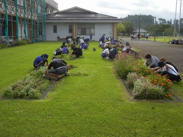 8月27日(日)にPTA奉仕作業が行われました。天候が心配されましたが、多数の生徒、保護者の参加により実施することができました。生徒は運動場の草抜きを中心に、保護者は草払機で草を刈ってもらったり、刈った草を軽トラに乗せてもらったり、周りをきれいしてもらったりしました。保護者の皆さん、生徒の皆さん、職員の皆さん、早朝から奉仕作業大変お疲れさまでした。