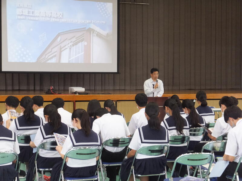 6月2日(金)に県立高等学校、都城工業高等専門学校合わせて9校の先生方をお迎えし、高校説明会を実施しました。各高校等の先生方の説明を聞くことで、それぞれの学校の特色を知り、自分の生き方や卒業後の進路を知る良い機会となりました。6月16日(金)には私立高校の説明会も予定されています。オープンスクールと合わせて、自分の進路決定の材料としてほしいと思います。