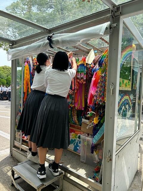 全員で折った千羽鶴の奉納