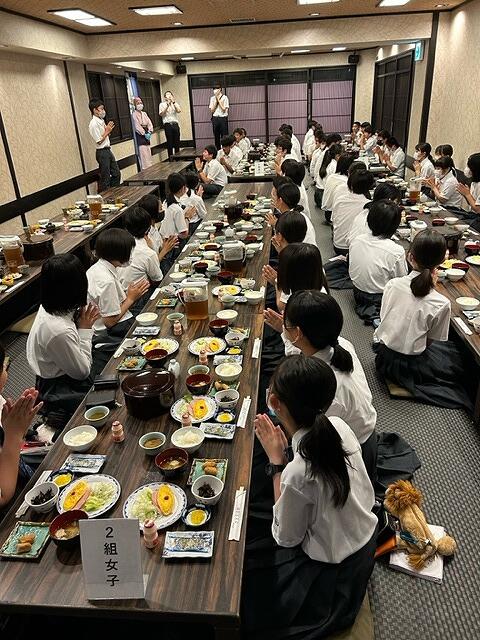 修学旅行2日目です。しっかり睡眠もとれたようで、みんな元気です。食事係のみなさんも、責任をもって仕事に取り組んでくれています。今日は、終日京都市内自主研修です。計画通り自主研修ができることを期待しています。