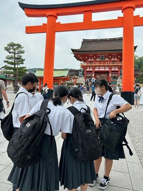 さと茂旅館であたたかいおもてなしをいただき、京都駅へ向かいました。いよいよ、自主研修のスタートです!午後から小雨模様でしたが、どこの班も無事に自主研修を終えることができました。班によってはハプニングもあったようですが、みんなで力を合わせ、京都の歴史や文化に触れ、多くのことを学ぶことができたようです。そして無事に2日目のホテルに到着しました。