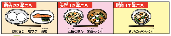 明治22年に山形県の小学校で昼食を振るまったことが始まりだと言われています。当時は「おにぎり・焼き魚・つけもの」という献立だったということで、今週の給食では同じようなメニューが提供されています。ホームページ内の給食献立表もぜひご覧ください。