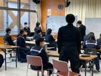 1月24日(火)午後から25日(水)にかけて、たいへん厳しい寒さとなり、雪も降りました。学校周辺や学校上の交差点で積雪や凍結が見られ、登下校がたいへん危険な状態でした。遅れて登校する生徒もいましたが、多くの生徒が安全に気をつけながら無事に登校し、元気を出して授業を受けました。私立入試も無事に行われました。