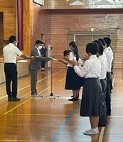 また、地区駅伝大会選手推戴式も行われました。男子の部、女子の部に出場する選手に向けて、校長先生から激励の言葉をいただきました。