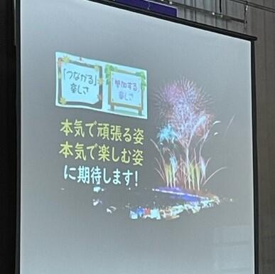 代表生徒3名から1学期の反省と2学期に向けて抱負の発表がありました。校長先生からは「つなぐ」ということを意識して取り組むことができたとお褒めの言葉をいただきました。