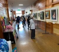 10月22日(土)9:00~16:00に「日本発祥地まつり」の作品展示を高原中学校で行っています。まつり前日ではありますが、多くの方が学校に来られて観覧されています。