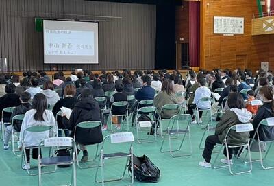 1校時の全校集会では、各学年の代表生徒より「新年の抱負」が発表されました。また、校長先生からのお話もありました。
