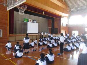 7月22日に、1学期前半終了の全校集会・団編成・結団式が行われました。1学期前半でできたことできなかったことをしっかりと整理して夏休みを有意義に過ごしてほしいと思います。