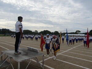 本日の練習メニューは、部活動紹介でした。各部気合いを入れて行進をしていました。