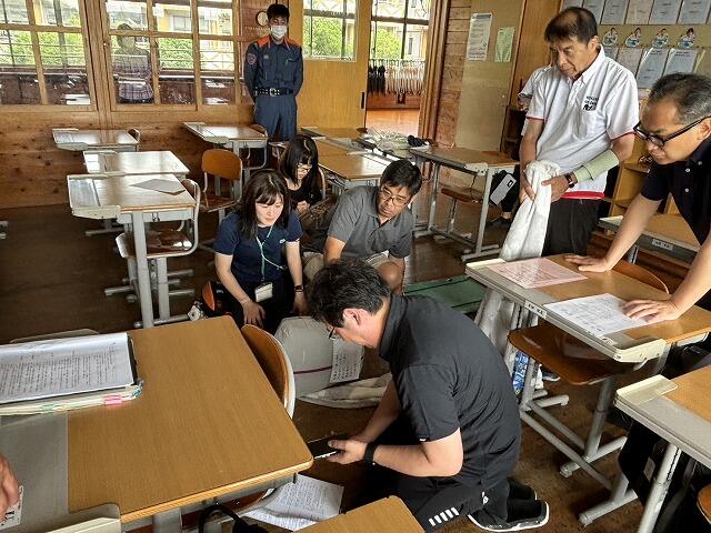 7月26日(金)に救急法講習・緊急時シミュレーション研修を行いました。西諸広域行政事務組合高原分遣所から5名方に来ていただき、心肺蘇生法と緊急時シミュレーションを行いました。緊急時シミュレーションでは、授業中男子生徒がてんかん発作を起こし、その場で意識を失った場面設定で役割分担を行い実施しました。