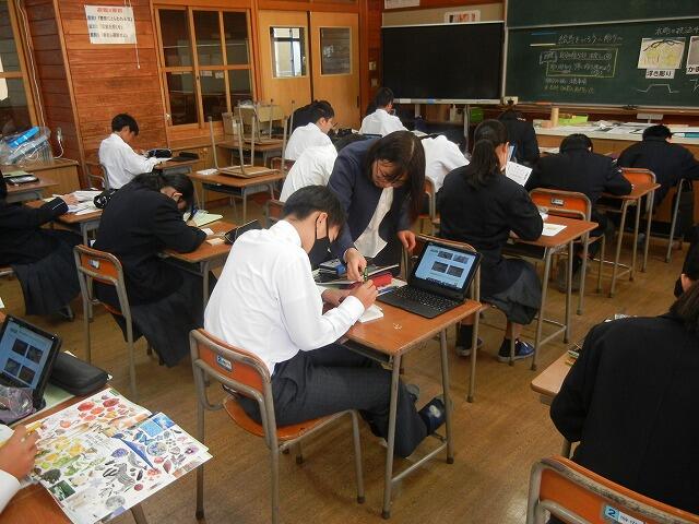 11月8日(金)の2校時に校内研修1人1研究授業で国語科のA先生の授業が行われました。人間と人口知能との関わりについて、「これからの時代に大切なことは何か」について、作文用紙かタブレットを自分で選択し、自分の考えをまとめる授業でした。