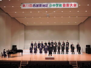 11月13日に西諸県地区小中学校音楽大会がありました。本校からは3年生2クラスが参加しました。1組は「YELL」、2組は「手紙」を歌いました。文化発表会でも素晴らしい歌声でしたが、それを上回るハーモニーでした。本当に3年生の力を感じました。
