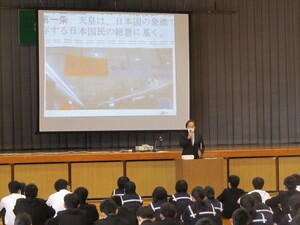 11月19日にふるさと講話が行われました。歴史研究家の横山教生先生に来校いただき、高原の歴史について、話をいただきました。古事記に記載されている史実をもとに高原との結びつきについて詳しく話していただきました。お忙しい中講演をしていただきましてありがとうございました。