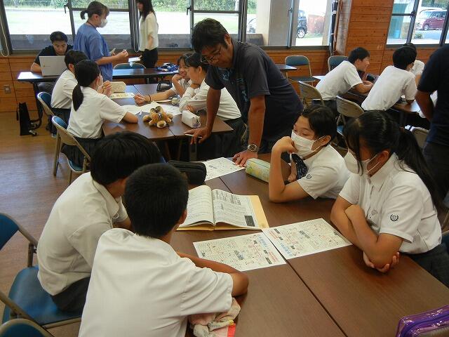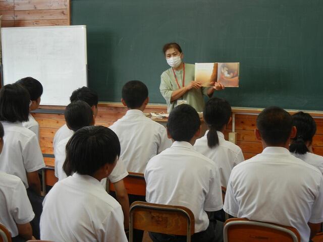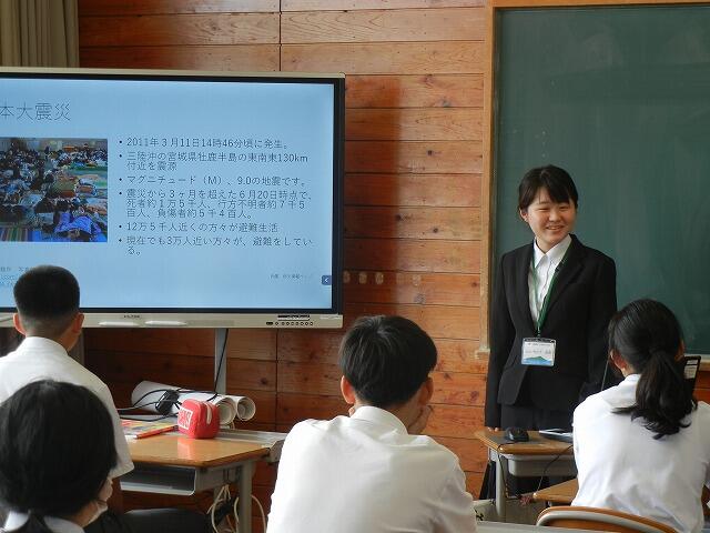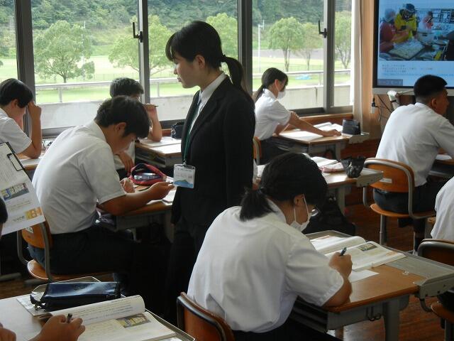9月9日(月)から10月1日(火)までの3週間の日程でT先生が高原中で教育実習を実施しています。9月19日(木)には3年2組で道徳の研究授業を行いました。題材は「塩むすび」。東日本大震災が起こった2か月後、避難所での生活を強いられる中、ボランティアで食事係を行う女の子の話でした。生徒は真剣に授業に臨み、自分たちもささえられていることへの気付きや感謝を伝えることの大切さなどを学びました。