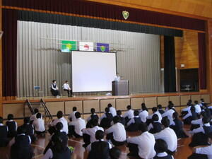 3人の生徒が2学期の抱負を発表しました。それぞれの学年で取り組みたいことや頑張りたいこと、目標にしたいことをしっかりと発表できました。そのあと校長先生より、夢について考える話がありました。みんな真剣に話を聞いていました。