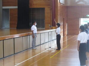 17日に地区の中学校秋季体育大会の選手推戴式が行われました。陸上は24日、その他の競技は26日・27日に行われます。今回は新チームとなり、1・2年生が出場することとなります。どのチームも集中し、、しっかりと実力を発揮してくれることだと思います。