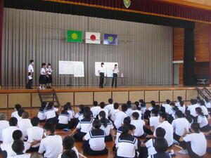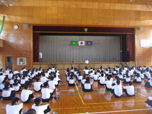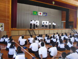 7月22日に、1学期前半終了の全校集会・団編成・結団式が行われました。1学期前半でできたことできなかったことをしっかりと整理して夏休みを有意義に過ごしてほしいと思います。