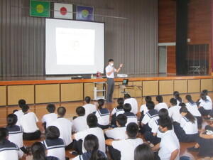 7月15日に薬物乱用防止教室が行われました。小林警察署の生活安全課の方に講話をしていただきました。薬物の種類や薬物の怖さなどについて学びました。実際にそのような場面にあわないことが一番よいのですが、万が一、あったときにはしっかりと断る勇気をもつことが大切ですね。