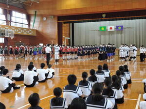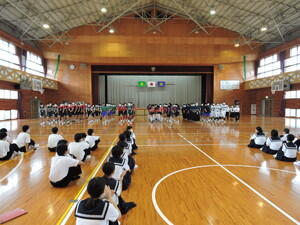 7月18日に県中学生特別スポーツ大会の推戴式が行われました。今回はコロナウィルス感染拡大防止のために、昨年までと大きくかわる形での開催となりました。どの部も一生懸命に頑張ってくることだとも居ます。