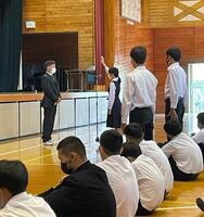 また、地区駅伝大会選手推戴式も行われました。男子の部、女子の部に出場する選手に向けて、校長先生から激励の言葉をいただきました。