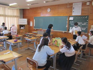 6月10日に町の中中連携が行われました。これは、町内の後川内中学校の生徒が本校に来て、一緒に勉強をするというものです。午前中は一緒に各教科の授業をうけ、午後は、総合的な学習の時間の活動に一緒に参加しました。1年生は福祉について、2年生は町内の企業の方に来ていただき、職業については講話を聞きました。3年生は、今後高原小学校に行き読み聞かせ活動を行うために読み聞かせボランティアの方々に教えていただく読み聞かせ講座がありました。違う環境の中、一緒に学ぶ楽しさを感じてもらえたのではと思います。また、ご協力いただきました企業の皆様方、ボランティアの皆様方ありがとうございました。