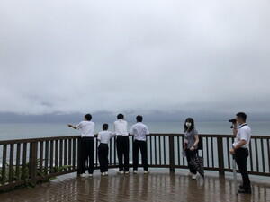 3年生の修学旅行団は、青島にわたり、青島神宮にいきました。ここで各学級ごとの写真撮影となります。