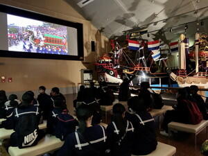 2年生の修学旅行団は、無事に下船し、がまだすドームで火山の災害について学習しました。「がまだすドーム」はジオ(地球)と火山の体験ミュージアムで雲仙岳の噴火の歴史や災害について学習できる施設です。がまだすとは方言でがんばるという意味だそうです。子どもたちは、平成大噴火シアターと島原大変劇場をみて、館内を見学しました。