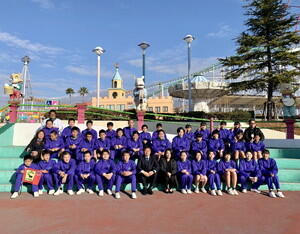 2年生の修学旅行、三井グリーンランドでの楽しい時間はあっという間に過ぎ、集合時間を迎え、解団式を行いました。3日間天気も良く、素晴らしい旅行となりました。これから高原中へ向けて出発となります。