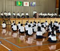 代表生徒3名から1学期の反省と2学期に向けて抱負の発表がありました。校長先生からは「つなぐ」ということを意識して取り組むことができたとお褒めの言葉をいただきました。