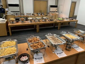 2年生修学旅行団は、講話を終え、夕食となりました。今日の夕食はなんとバイキングでした。好きな物を好きなだけ食べれるので、満足だったと思います。感染拡大防止のために、みんなポリ手袋を付けて、料理を取っていました。
