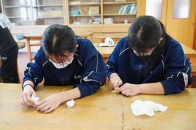 3月6日(金)に最後の遠足に行きました。霧島市の上野原縄文の森で竪穴住居等を見学し、貝を削ってアクセサリー作りの体験を行いました。その後昼食をとり、福山町の酢の見学をして、松下美術館を見学しました。縄文の森では竪穴住居が復元されており、その大きさを体験することができました。また、松下美術館には約3000点もの美術作品が収蔵されており、貴重な経験となったことだと思います