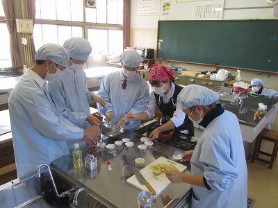 11月14日に3年生の家庭科の授業では調理実習を行いました。自分たちで計画を立てて工夫して調理を行いました。