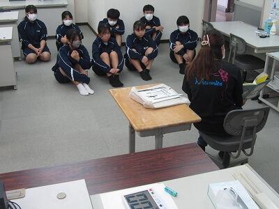 11月26日、弓道の授業がありました。的までの距離が、前行っていた距離の約2倍の距離になり、本格的な距離での練習となりました。タブレットを使い、自分のフォームを確認しながら、練習をしました。後半は、的に届くようになり、的中も見られました。矢もきれいに飛ぶようになり、次回、高原中学校の弓道場をお借りして、最後となります。楽しみですね。
