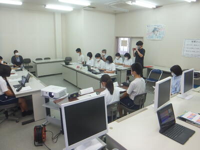本日:9月6日(火)、授業を参観しました。どの授業もタブレットPCやパソコン、大型モニター等を効果的に使って、授業が行われていました。『先生もICT機器を使って授業をしてください。』と言われたら、自信がありません。悩んでしまいます。生徒のみなさんも先生方もICT機器を使い、『すごいな』と思います。これからもドンドン活用してください。すみません。いつも旗を降るばかりで・・・(笑)(校長:鎌田浩二)