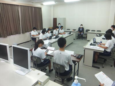9月9日(金)、参観日を行いました。その中で、学校保健委員会(家庭教育学級も兼ねる)を開催しました。保護者の方には、お忙しい中、多数、出席していただきましてありがとうございました。生徒はワークショップの形で参加ししました。オンラインで、『LINE財団』の方の講話を聞き、グループでの話し合いを通して、様々な意見が発表されました。生徒のみなさんは、今後、SNSを使う機会が増えると思います。いろいろな事件に巻き込まれないようにしてください。(校長:鎌田浩二)
