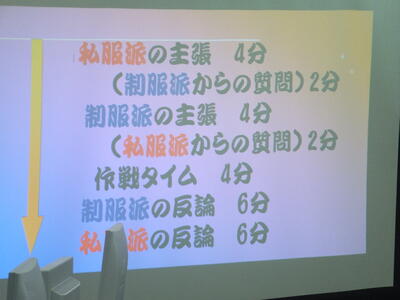 ※今回の議題:『学校生活は制服と私服のどちらがよいか。』です。