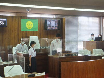 本日:10月11日(火)、『高原子ども未来議会』が開催されました。本校より、温水歩花さんと西村優輝さん(西村さんは議長も務めました。)が出席しました。2人とも堂々と自分の意見を発表しました。お疲れ様でした。議会の様子が、本日:10月11日(火)、MRT(宮崎放送)午後4時50分からの『Check!』の冒頭で放映予定です。2人のインタビューも紹介されると思います。ご都合のつく方は、ぜひ、ご覧ください(校長:鎌田浩二)