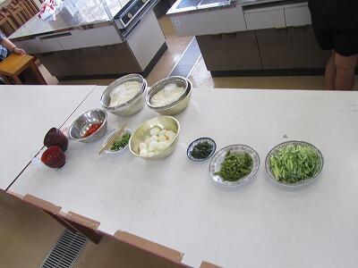 7月23日の昼に希望者でそうめんを食べました。学校で育てている野菜も一緒に調理して食べました。みんなで一緒に食べると美味しいですね。
