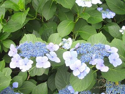 本校のあじさいもほとんど青っぽいのですが、体育館のトイレ裏のあじさいは少しですが赤っぽい色をしています。とても面白いですね。