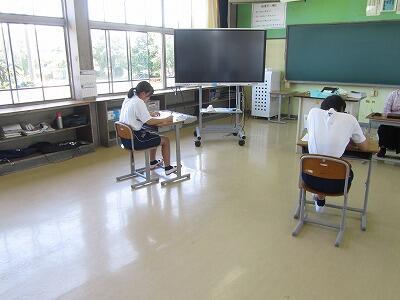 6月17日に、南部教育事務所と町の教育委員会の先生方が来校され、学校運営の協議や授業参観がありました。3年生は実力テスト前でテストに向けての演習を行っていました。2年生は、メディアの選び方について学習をしていました。みんな真剣に頑張っていますね。素晴らしいです。