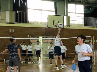 9月8日(金)、今日は午後から学校参観日でした。参観授業は体育で、ミニバレーボールを使ってのバレーボールです。普段から練習しているとあって、レシーブやスパイクも様になってきましたね。上達スピードがかなり速いと思いました。今日は、保護者の皆さんにも参加していただいてゲームもしました。親子で楽しそうな姿が見られました。また、6校時は、学校保健委員会で、東洋羽毛九州販売株式会社より講師をお招きして、「睡眠の大切さ」についてお話ししていただきました。睡眠時間の長さと、学力や成長との関係、寝る前にスマホを使うことの影響や眠れないときの対処法などについて、分かりやすく丁寧にお話ししていただきました。ありがとうございました。