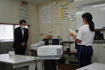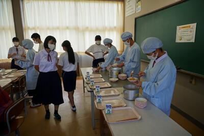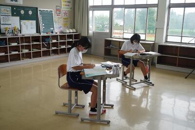 9月11日(月)、今朝の後川内地区の気温は22℃の快適な朝でした。少しずつ秋の気配がしてきましたね。今日は、給食の準備の様子を紹介します。給食当番は、2週間おきに交代しながらみんなで頑張っています。給食室から運ぶ時には、食缶を落としたら大変なことになるので、緊張感をもって慎重に運んでいます。給食室の調理員さんをはじめ、みんなに感謝しながら戴いています。今日も美味しい給食を食べることができました。さて、話は変わりますが、後川内中学校が、宮日新聞の「みんなの学校」コーナーで紹介されます。もちろん新聞記者は生徒達です。先週から放課後コンピュータ室に集まって、全員で分担しながら記事を書いています。原稿締切が今週金曜日まで。10月3日(火)の宮日新聞の一面に掲載される予定です。あとは当日まで、乞うご期待!
