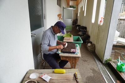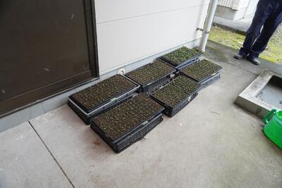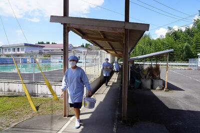 9月20日(水)、昨日造園業の方が来られて、学校横の木を1本丸々幹から伐採していただきました。これは、後川内保育園に繋がる道に、木の枝が伸びて、マイクロバス等の通行の妨げとなっており町に依頼していたものです。随分とスッキリしてきました。また、プール横の倉庫では、学校用務員の方が「なでしこ」の種をポットに一つずつ植えていました。卒業式や入学式に備えて、今から準備を進められていました。秋に近づいているとは言え、まだまだ暑い中、本当にありがとうございます。これから、生徒達と一緒にプランターに移し替えて行く予定です。学校も花が咲いて明るくなっていきます。