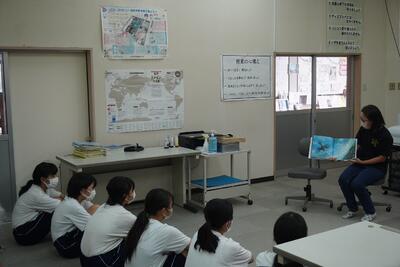 ※3年生が見ていた掲示板は、こちら(生徒数推移グラフ.pdf)。宮日新聞の記事で、後川内中の歴史について調べている生徒からの要望でつくったものです。自分たちのお父さんやお母さんの時の生徒数に興味があったようです。