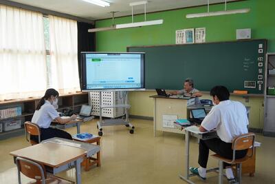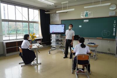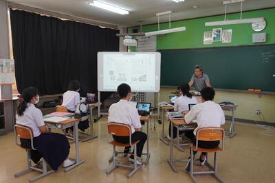 7月19日(水)、今日は給食の様子を紹介します。コロナ禍では、「正面を向いて、黙食で。」が全国的な流れでしたが、今では、本校は全員で食べています。みんな食事中のマナーが良いので、黙食とまではいきませんが、静かに楽しく食べています。先生達も交代で一緒に食べます。昨日は、ALTのケネディー先生も来られ、ちょっとした国際交流の場になっています。ちなみに、ケネディー先生は、明日故郷のケニアに里帰りするそうです。ケニアというと暑いイメージですが、今は23℃ぐらいで寒いんだそうです。日本のように湿気は無いし、39℃まで上がることは考えられないそうです。