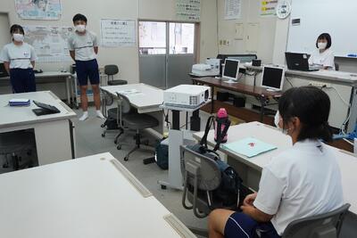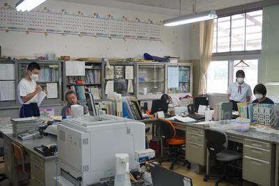 9月6日(水)、昼休み時間に職員室に行くと、生徒達がプリントやノート持参で、先生たちのところに勉強に来ていました。先生達も一生懸命対応しています。廊下には、次の生徒が準備をしています。きっと、課題や授業で、分からないところがあって質問に来ているのだろうと思い嬉しくなりました。分からないところが分かるようになった時の喜びが、学力向上に繋がっていきます。生徒の皆さん!頑張って!!