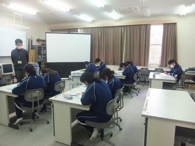 本日:2月1日(水)午後、1年生と2年生は第4回校内テスト(2/16:木、2/17:金 実施)に向けた『テスト勉強計画』をたてました。部活動中止の期間もありますので、計画的に勉強を進めてください。また、3年生は明日:2月2日(木)行われる『推薦・連携型入学者選抜検査』の事前指導を行いました。自分の持っている力をすべて発揮してください。(校長:鎌田浩二)