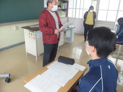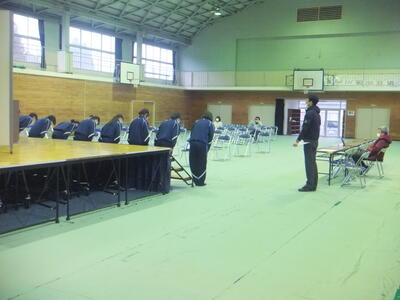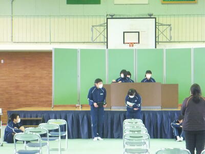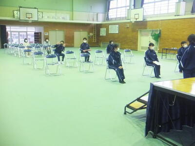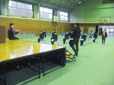昨日:2月7日(火)の午後、『学習発表会のリハーサル』を行いました。今回の学習発表会・立志式は、保護者の方々をはじめ地域のみなさまにも案内しております。多数、参観していただき、生徒に励ましのお言葉をかけていただけると生徒も喜ぶと思います。多数の来校を期待します。学校でも会場の換気等コロナ感染防止対策をとりますが、来校される際には、感染防止対策のご理解とご協力をよろしくお願いいたします。(校長:鎌田浩二)